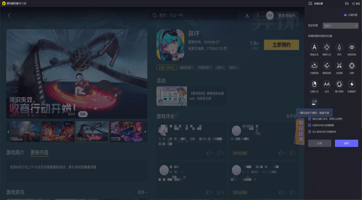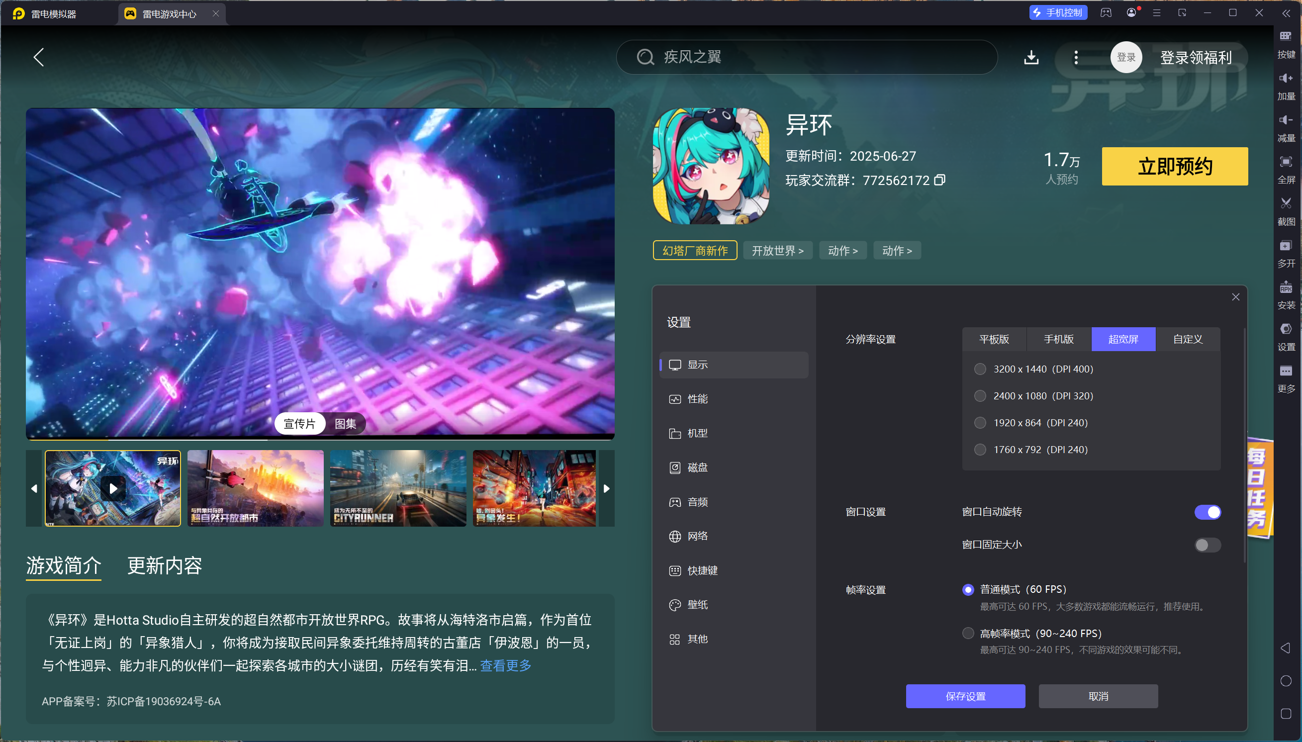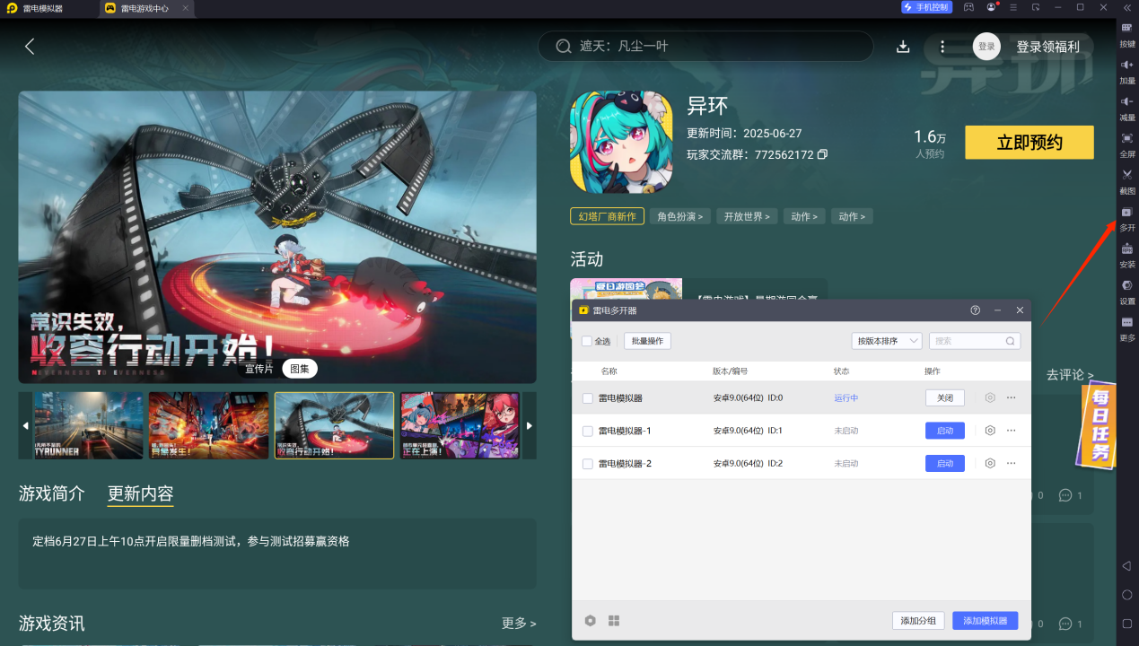 在雷电模拟器上运行异环,可以无视设备硬件配置限制,更高效地运行游戏。这有助于玩家更快地获取资源、提升角色等级和战力。