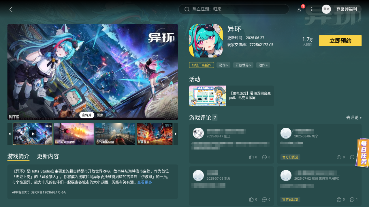 上述便是异环下载的全部内容了,游戏中带来的玩法很是丰富,并且也是吸引了许多朋友来加入其中体验,关键就在于不同的都市场景与载具、角色等的选择,朋友们如果喜欢,记得现在就去雷电模拟器进行预约哦。