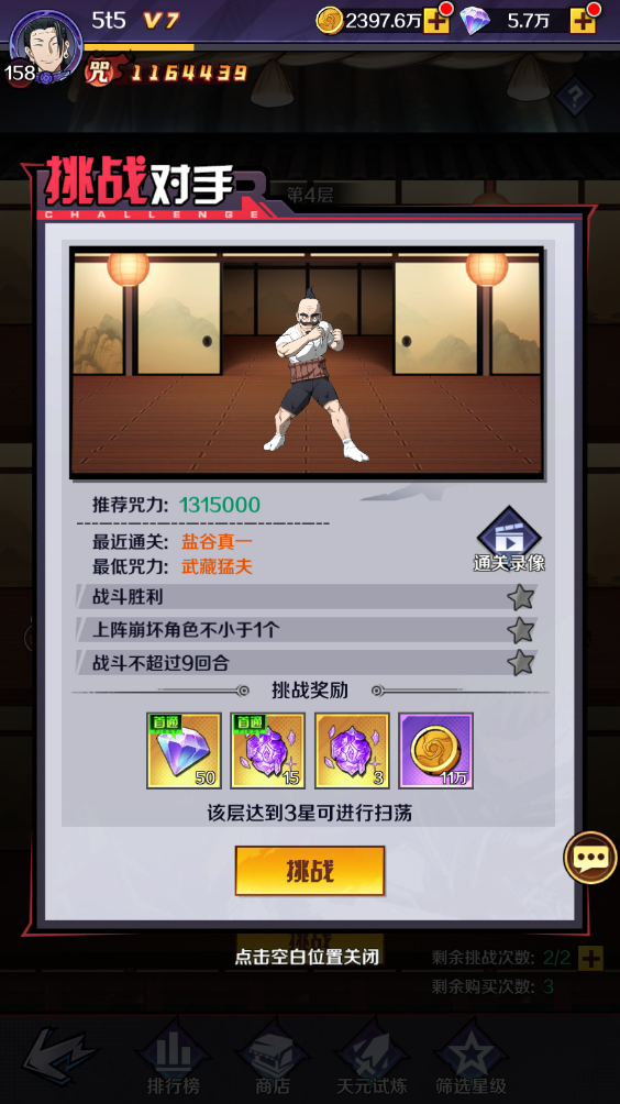 2、按星级条件调整挑战阵容,可以在通关后获得三星;