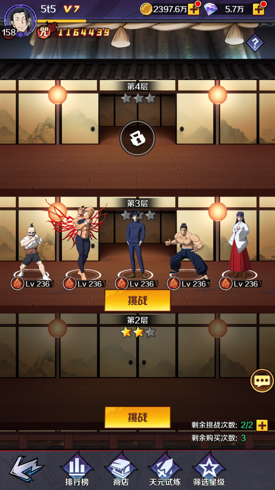 7、每天免费获得2次挑战次数,挑战失败和每层首次挑战胜利,不消耗次数。