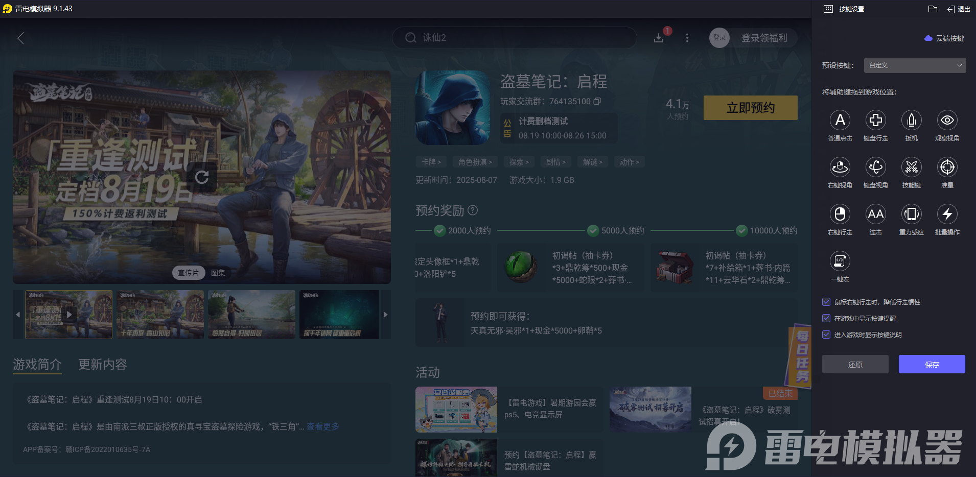 盗墓笔记启程模拟器哪个好?盗墓笔记启程是一款古墓解谜与剧情沉浸的游戏,你可以探寻古墓、破解机关、收集线索、与同伴协作,用自己的方式揭开千年谜团。需要完成这么多复杂操作,一款好的盗墓笔记启程模拟器至关重要,雷电模拟器是最佳选择,它有诸多功能服务游戏,能助你更好地探秘古墓!