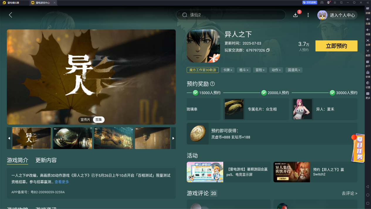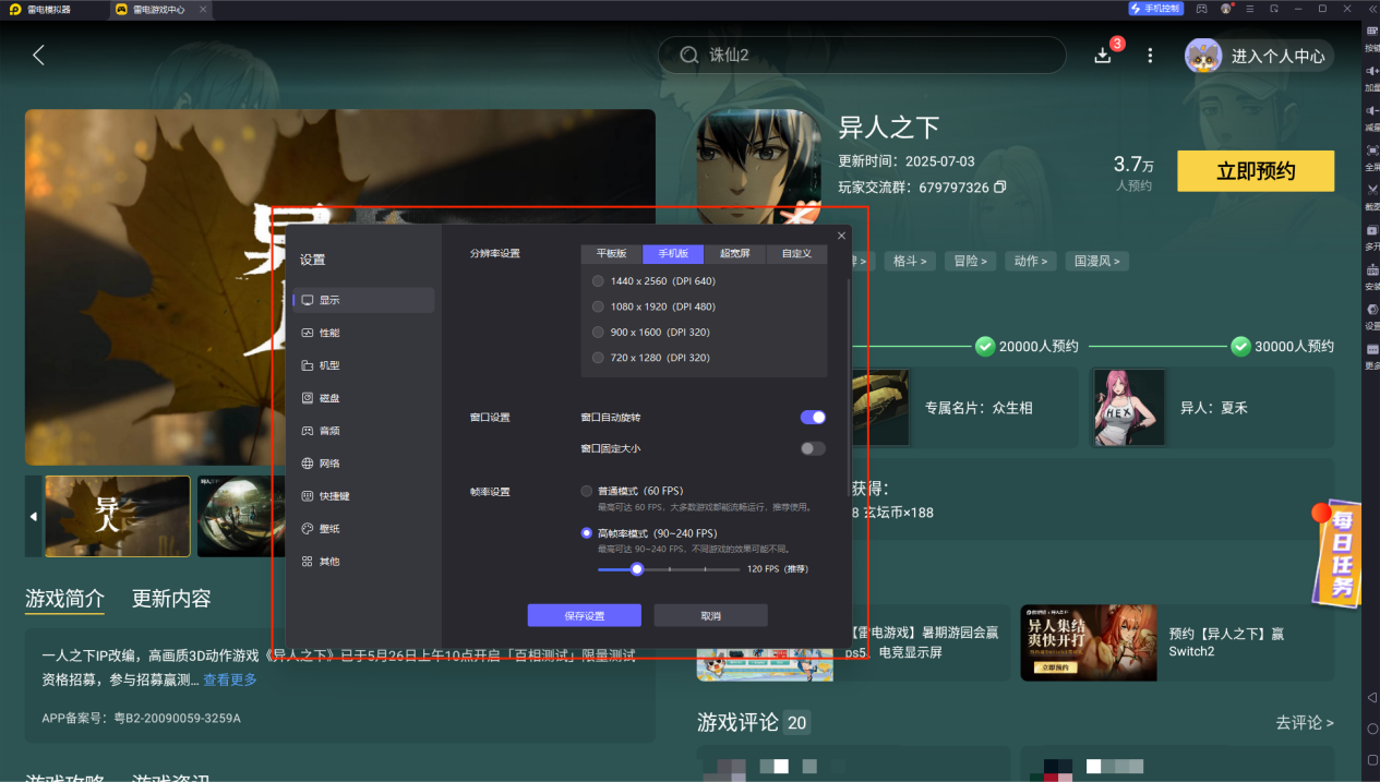 推荐大家使用雷电模拟器体验这款游戏,雷电模拟器能够维持高帧数游玩游戏,设备允许的时候最大帧数能到240帧,日常维持在最舒适的120帧以上,在游玩这种动作游戏的时候,每一帧都关乎游戏的胜败,很多高玩都追求极致的帧数,在这里雷电模拟器能完全满足各位,除此之外,还提供宽屏高清的游戏画面,并且还能多开玩一下小号和副游,功能多样契合玩家的多种游戏需求。