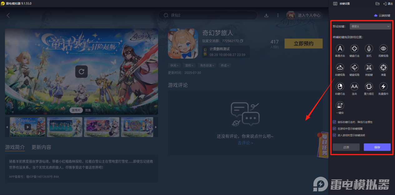 雷电模拟器搭配上奇幻梦旅人电脑版,大屏沉浸感、键鼠精准度、多开便利性都比手机版强,赶紧按教程下载体验吧!试过就知道,体验提升不止一点点!
