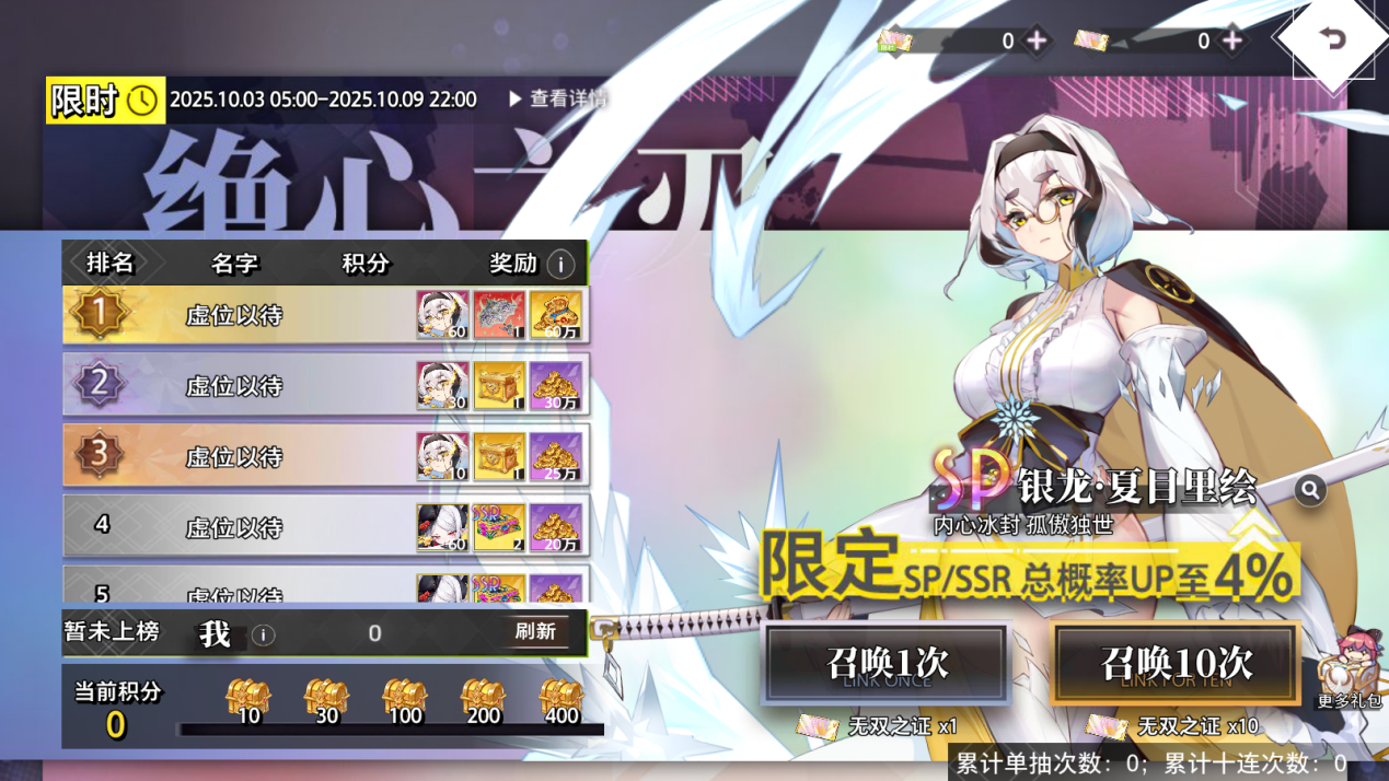 绝心之刃限时召唤活动开启,全新SP伙伴银龙·夏目立绘限时登场!