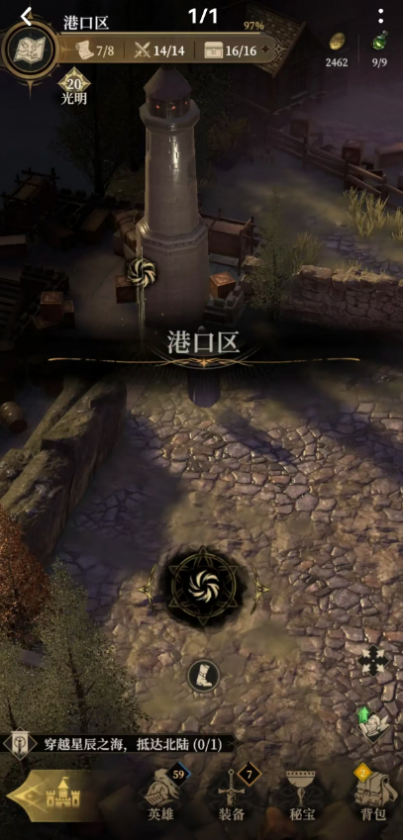 跟着任务指引大家能够来到港口区,这个灯塔方向玩家可以穿越星辰之海抵达北大陆,作为著名的港口,可以通过这里的港口达到其他重要的地方,并且在西北方向有一个隐藏任务和该角色对话能买到一个加固模板,对后面的任务非常的重要。