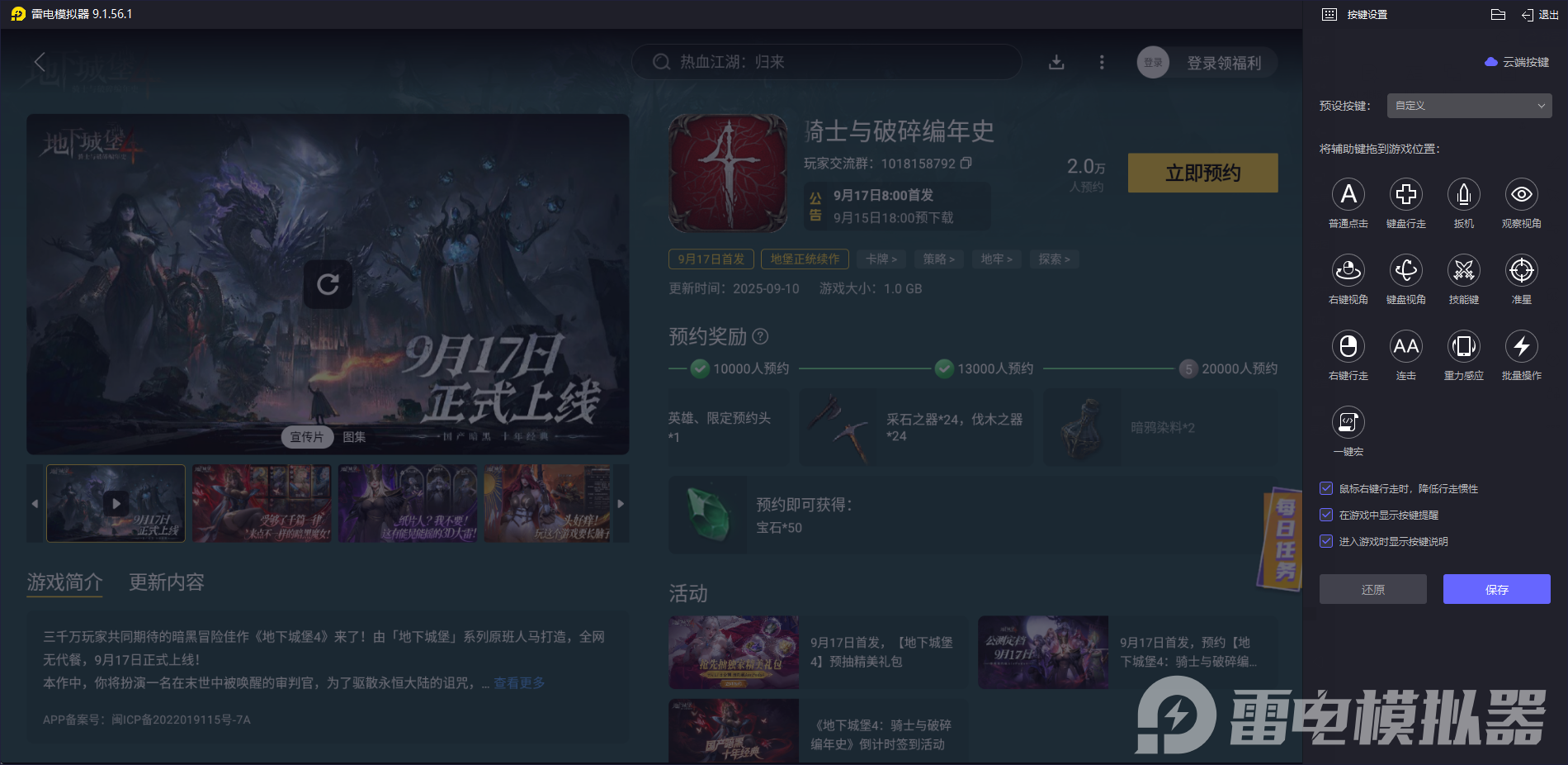 键鼠映射功能可以把地下城堡4新手职业的核心技能绑定快捷键。不管是初光之盾的护盾还是讯矢的缴械,按键就触发,比手机触屏更稳。