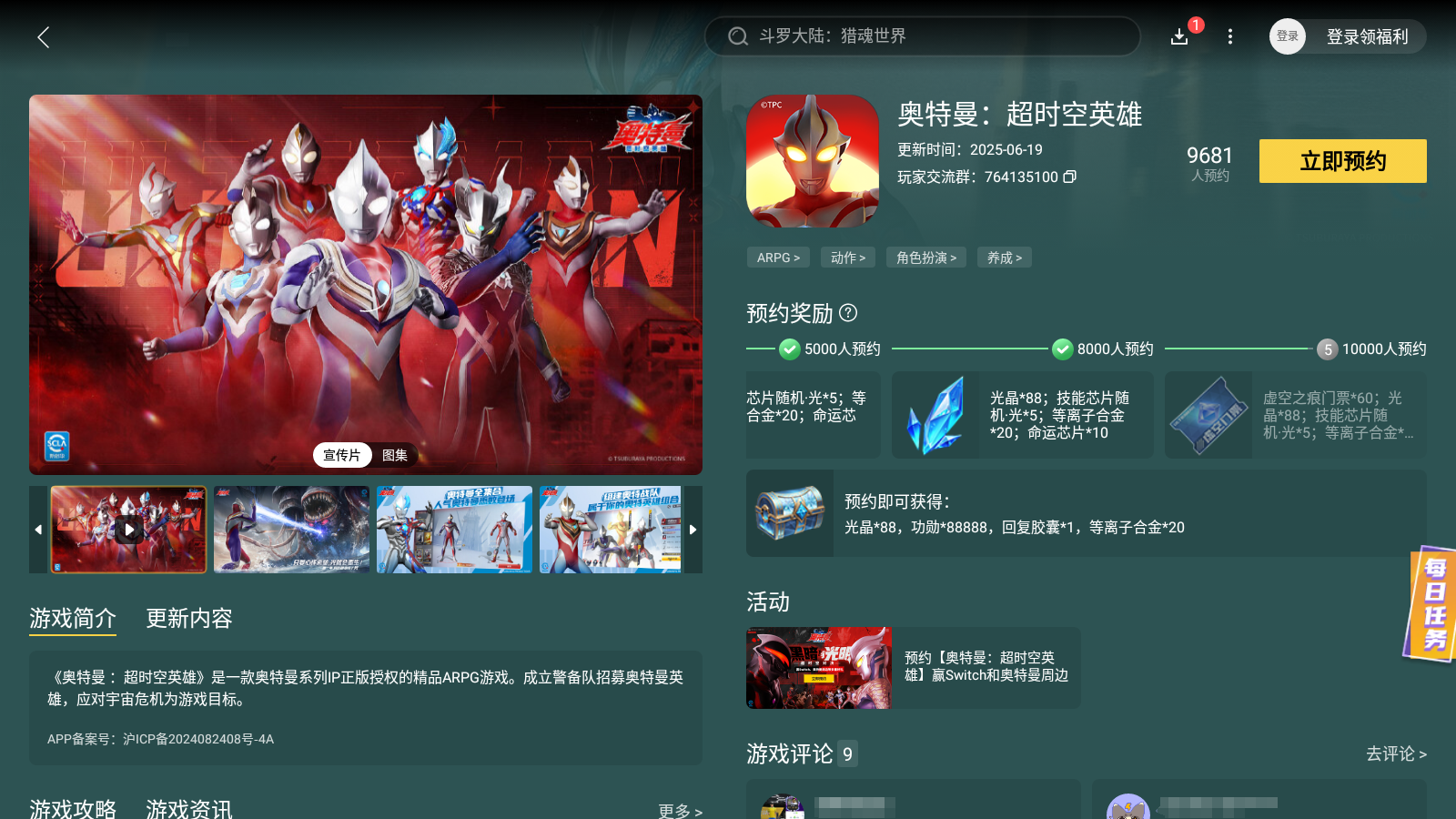 以上便是奥特曼超时空英雄多久上线的全部内容,对于广大小伙伴们而言,这款横版格斗结合了多种不同奥特曼的手游可是很不错的,并且实际体验效果上也得到了许多玩家认可,大家若是喜欢就抓紧去试试吧。