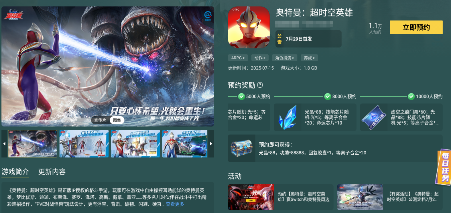 以上就是小编和大家分享的预约奥特曼超时空英雄的全部内容。在游戏世界里,玩家有机会将不同的奥特曼角色招揽至麾下。这些角色个个身怀绝技,各自拥有着不同的技能与属性。玩家能够借助突破关卡和积累经验升级等途径,逐步增强角色的战斗实力。