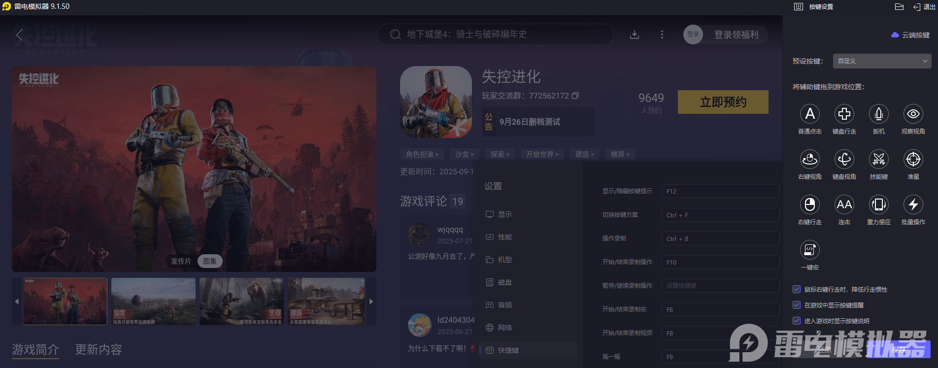 当你在电脑上通过雷电模拟器运行失控进化时,只要通过模拟器精准的按键映射功能,就能够让你将复杂操作适配到键鼠,探索据点更方便。