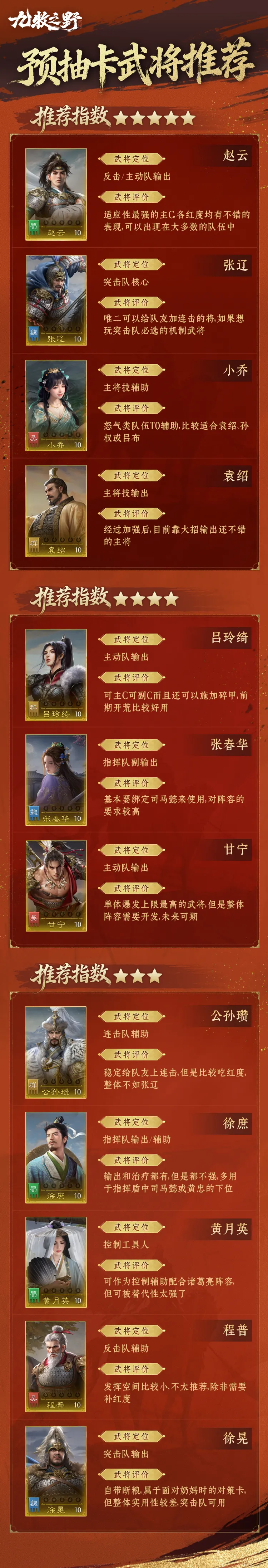 预抽卡武将推荐