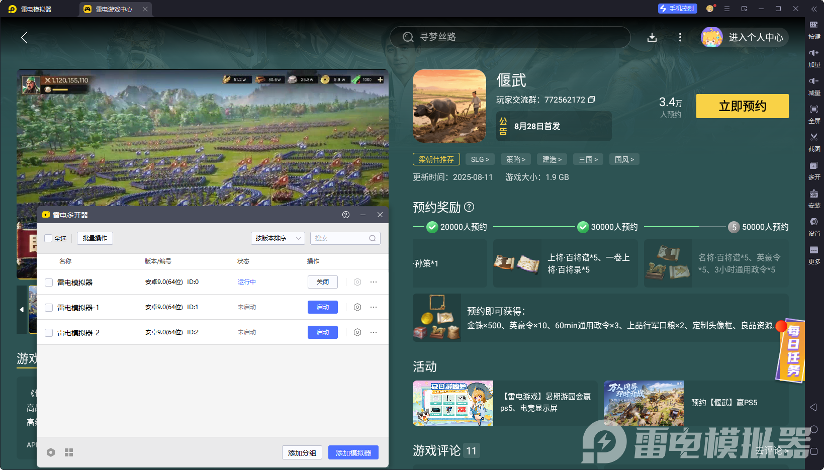 不用模拟器?纯纯用冷兵器刚别人曹操啊!赶紧下载雷电模拟器,配合这份偃武三国联盟攻略,游戏上线就让你盟里那帮手机党喊你大佬!