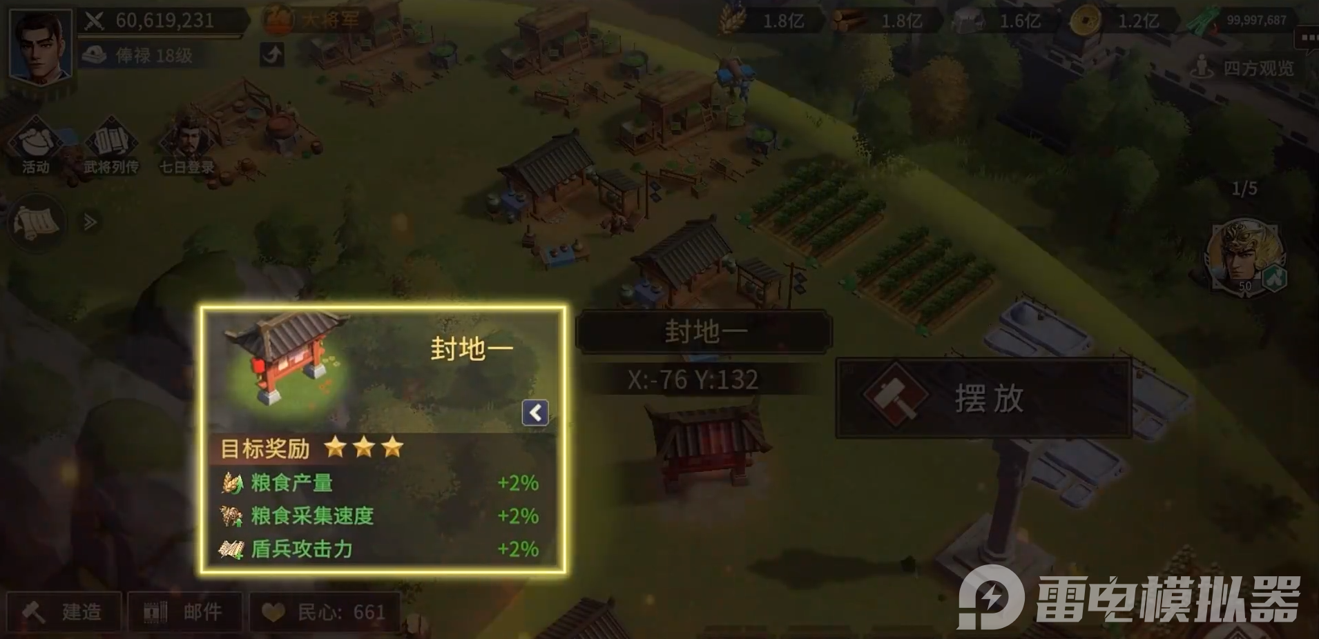目前游戏内设定了有11块封地可供开拓,每块封地需先击败占领的贼寇才能激活,而战斗胜利后不仅获得该区域控制权,还能主动奖励武将和额外图纸,从第三块封地开始,每块土地的特性上都会有所不同,而大家得针对性地集中建造对应类型建筑以充分利用加成效果。