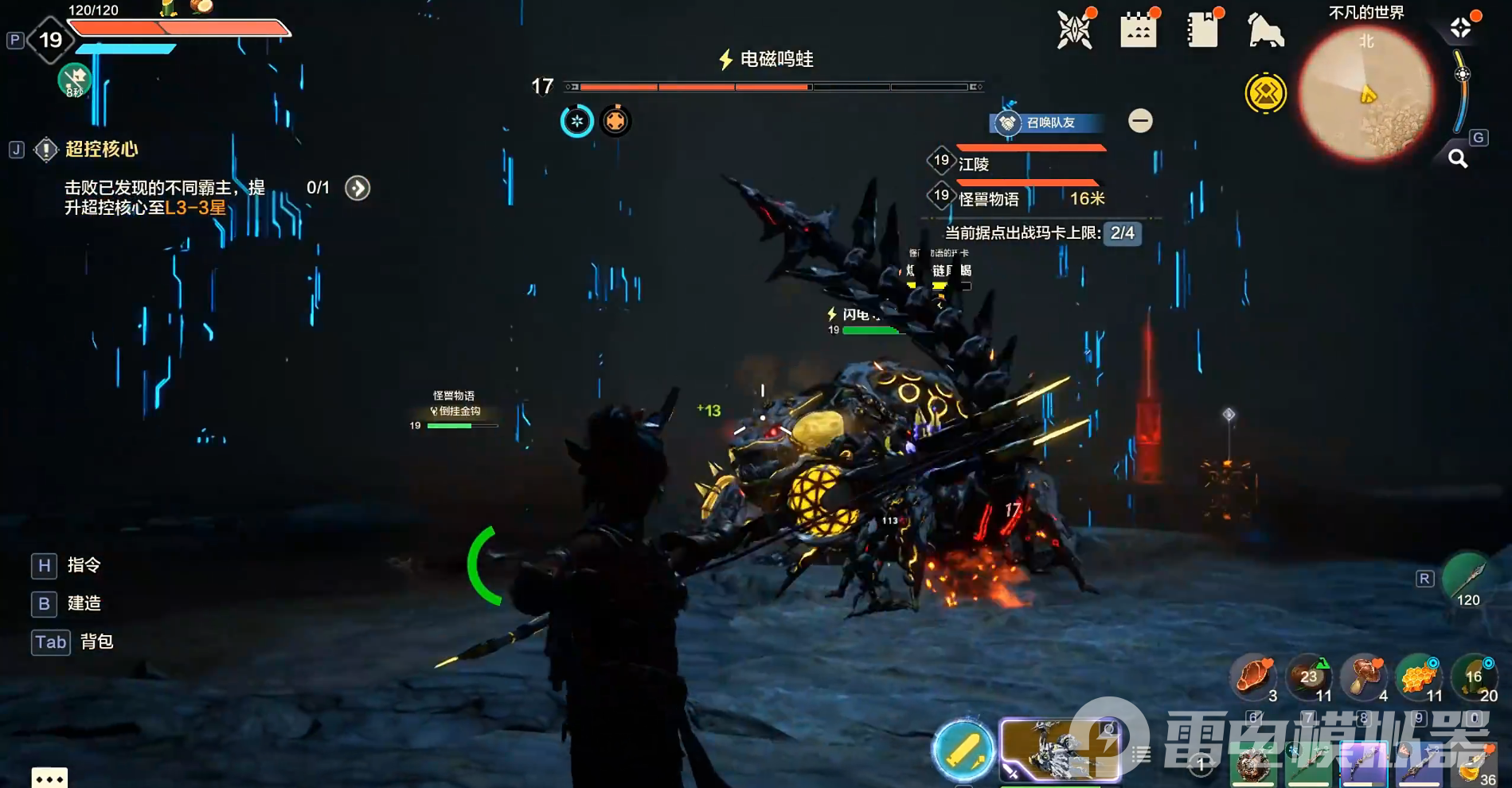 打法上,推荐各位去使用电元素玛卡作为坦克吸引仇恨,大家可以选择用远程电箭输出,当电元素累积满时,哈鲁曼会被麻痹3秒,此时可切换近战武器爆发,不过得注意躲避全屏火焰冲击波,利用疾跑和翻滚规避伤害,更是要及时去补充血量。