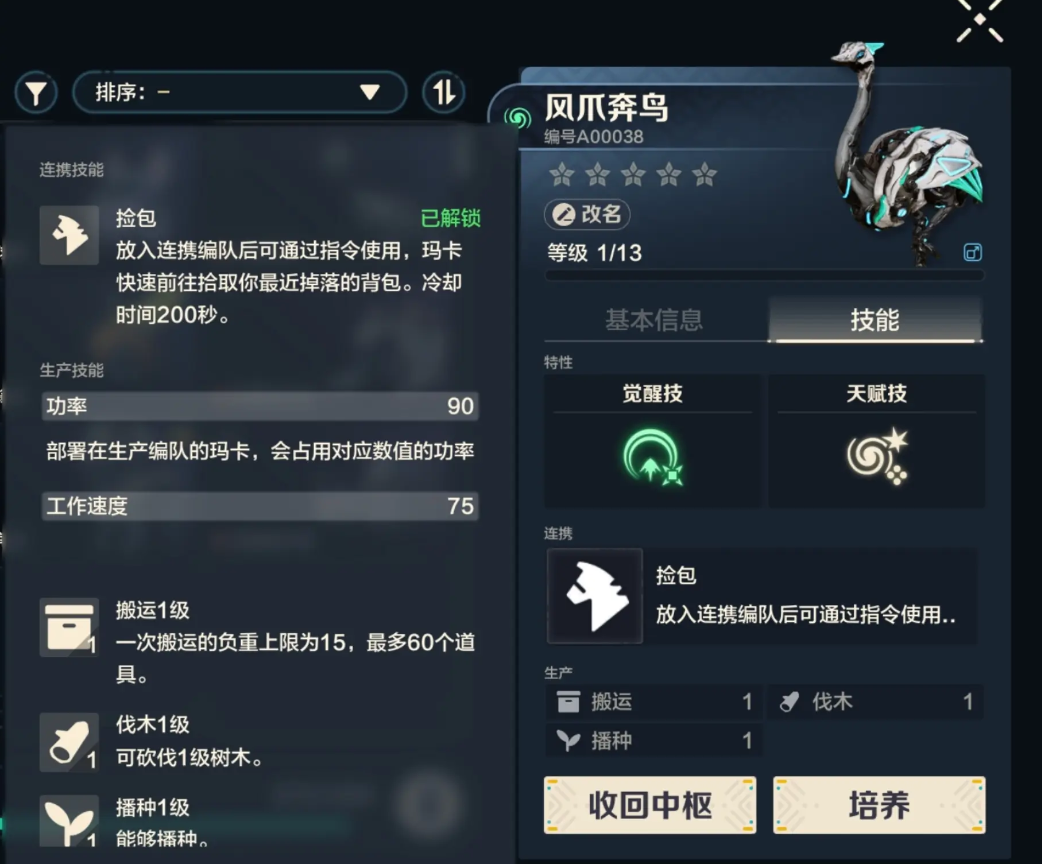 风爪奔鸟:属性为风,能自动拾取战斗后的掉落物及资源,避免手动带来的损失,通过普通副本或家园合成获得,能进一步提升玩家的生存效率。