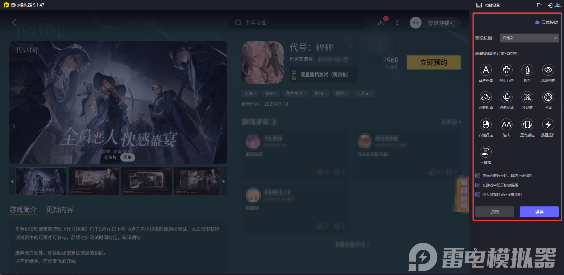 安装完成后,启动雷电模拟器并进入内置的“游戏中心”,在搜索栏输入“代号砰砰”。若游戏已上线,可直接点击下载;若仍处于测试阶段,可选择“预约”功能,待公测开放后自动安装并获取预约奖励。