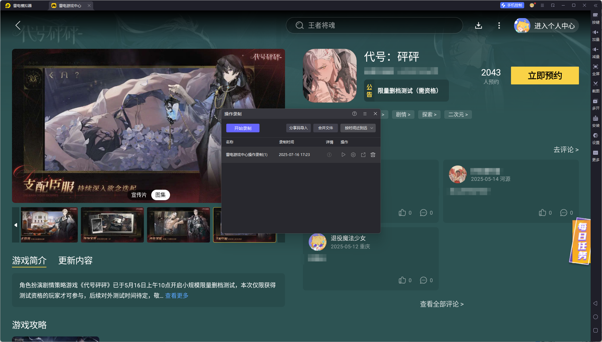 所以我们就需要雷电模拟器的辅助了,雷电模拟器的录制器功能可以帮我们自动完成每日任务,通过和提线人完成情报解析和黑市交易等任务,稳定提升好感度,直至解锁完全形态。