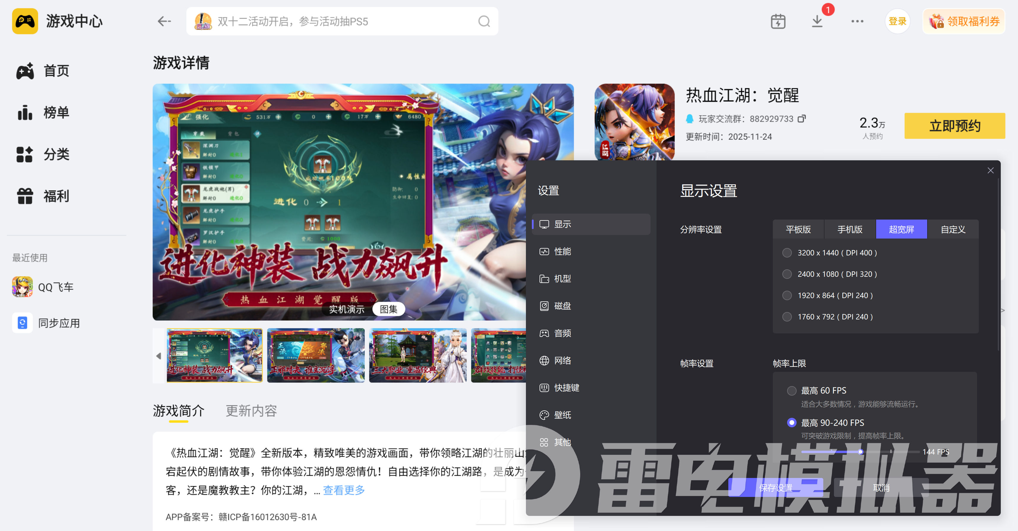 如果你想体验到更完美的剑客技能效果,那么我建议你,一定要使用雷电模拟器来玩这款游戏。因为通过它,我们可以利用虚拟安卓手机操作界面,在更大屏幕的电脑上玩游戏,通过它的超宽屏设置,大屏高分辨率和165hz刷新的效果,我们不仅能体验到更震撼的终极技能,而且还能在更清晰的游戏场景里,稳定畅玩。