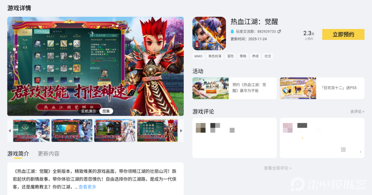 所以,雷电模拟器对于一个游戏玩家而言,真的是一个不错的选择!好啦,以上就是我对热血江湖觉醒剑客技能的全部介绍内容了。需要注意的是,我们选择技能的时候,可以优先提高觉醒技能,以便达到最完美的效果哦。