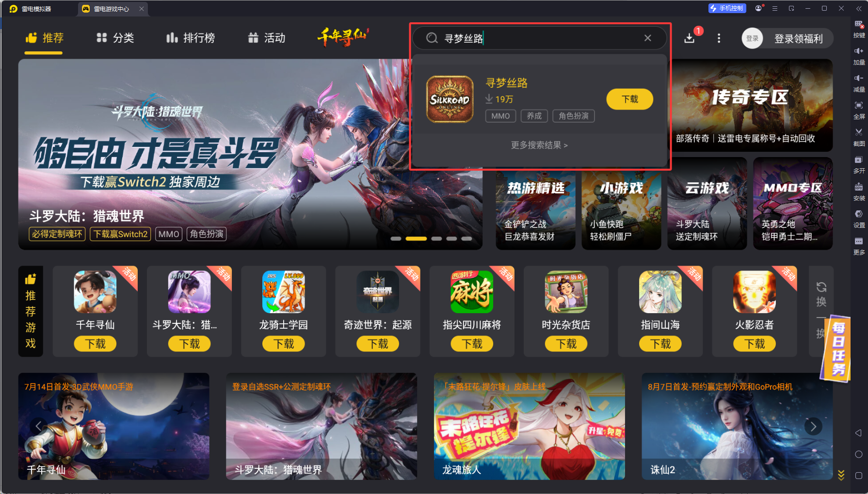 安装完成后,启动雷电模拟器,在桌面找到“雷电游戏中心”。进入后,在搜索栏输入“寻梦丝路”,若游戏已上线,直接点击下载安装;若尚未发布,可进行预约,待游戏开放后自动提醒。雷电模拟器内置的游戏中心提供丰富的渠道服支持,确保玩家能找到合适的服务器版本。