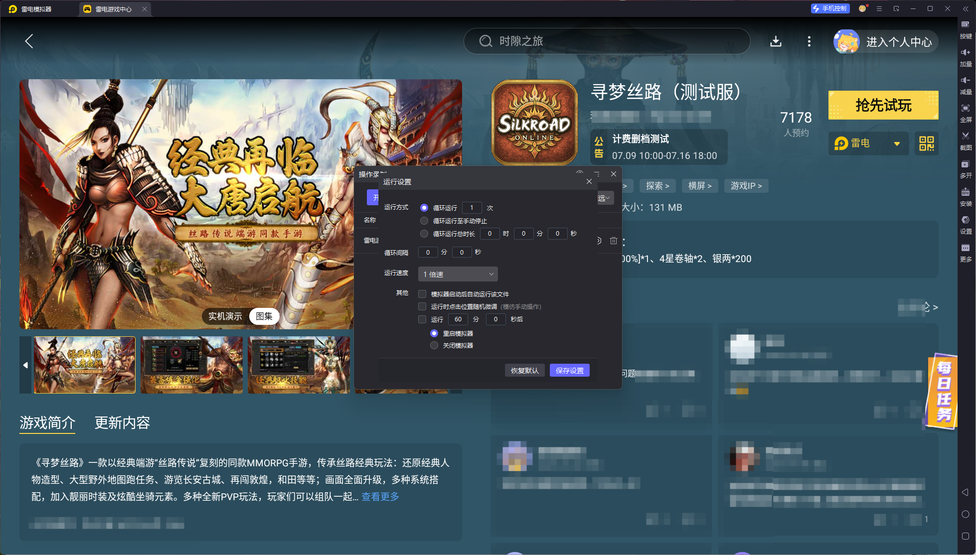 不过还好,咱们有雷电模拟器,这些繁杂的神器神装的碎片咱们可以反复刷本去获取,比如开启雷电模拟器的录制器功能,手动刷一遍之后开启无限循环,等晚上休息时就挂机去无限刷本,很快就能凑齐武器碎片合成传奇长弓了。
