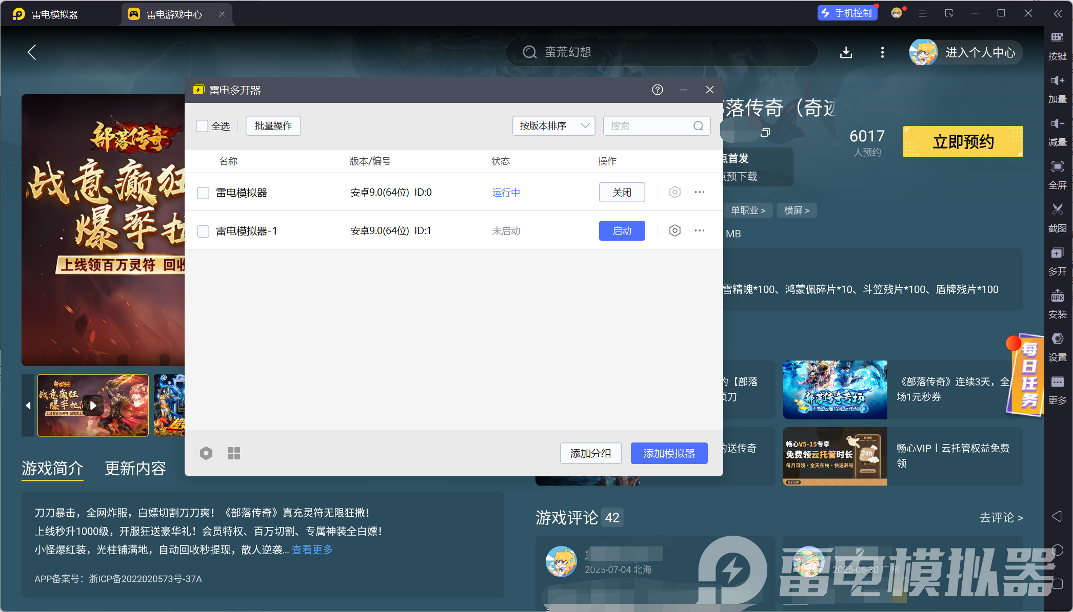 如果想在电脑上体验部落传奇,雷电模拟器是绝佳选择,仅需在雷电模拟器搜索栏输入部落传奇,就能点击直接下载体验了,雷电模拟器不仅支持游戏高帧率运行,还拥有自定义键盘按键功能,对想要搬砖的小伙伴来说,既省时又省力。其多开功能方便玩家同时管理多个账号,挂机刷资源效率翻倍。