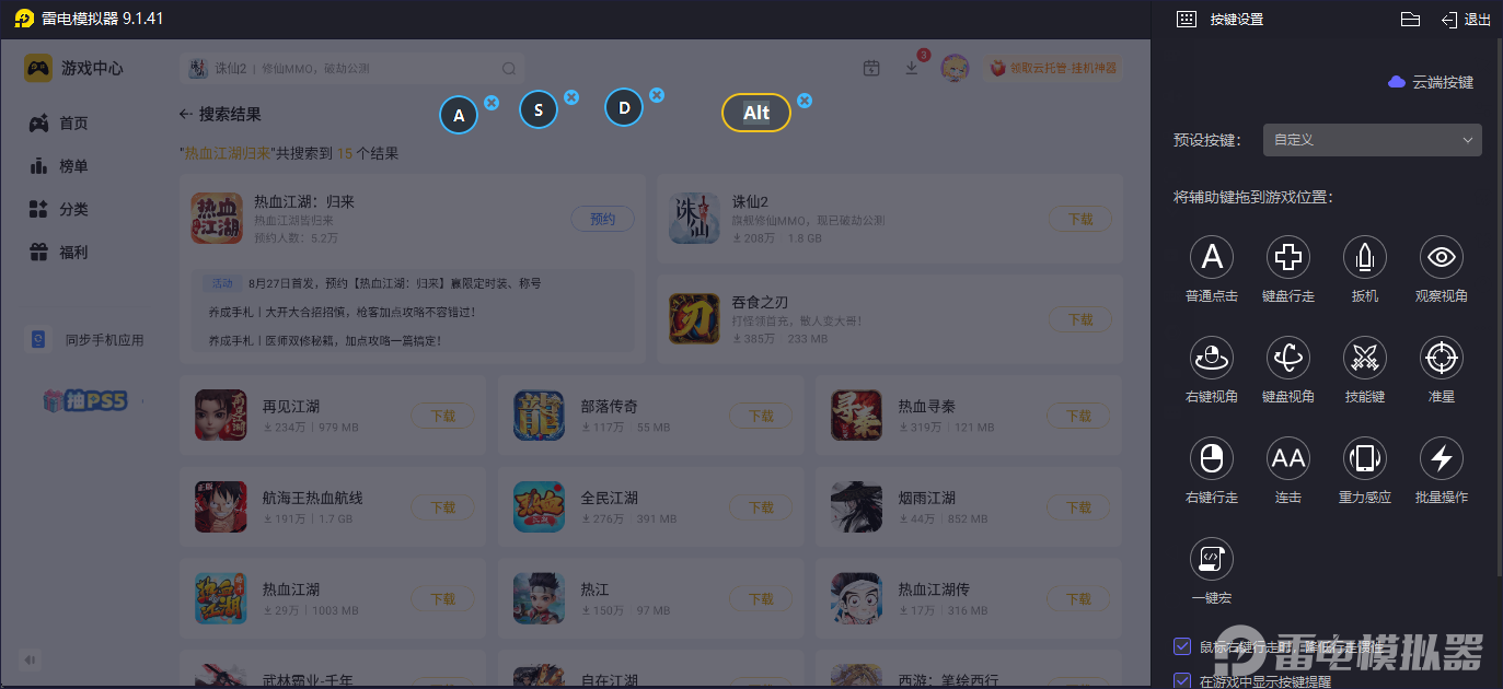 此外电脑端运行,可以让大家通过键盘鼠标来代替触屏操作,关键是模拟器支持自定义键位,到时候我们可以把常用技能绑定到数字键,这样能实现快速释放武功或连招,尤其在抢BOSS、PVP对战等场景中,操作精度远超手机触屏。