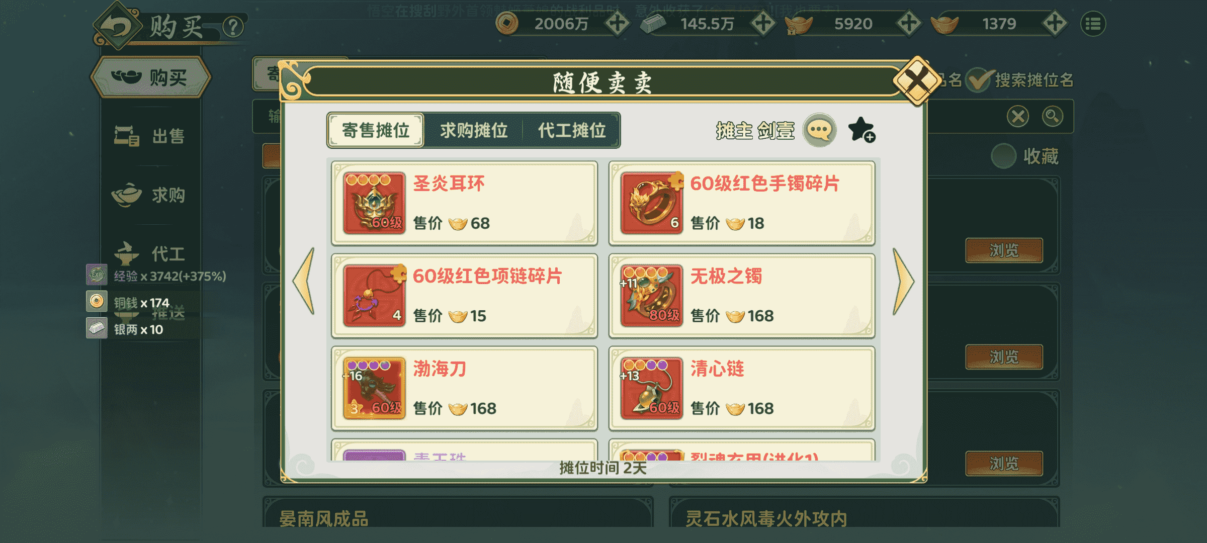 要不是有些大佬拿出来卖,我还不知道有这么多厉害的装备。在摊位前多看看,就能直观了解它们的差异,以后自己获取到类似道具,就能清楚该怎么使用,不至于一头雾水。而且,通过观察其他玩家售卖的装备搭配,还能学到不同职业的最佳装备组合思路,为自己打造角色提供参考。
