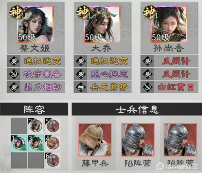 三国天下归心平民阵容推荐就介绍到这里了,玩家手中有这些名将的话不妨进行培养,度过前期发展,积累资源。想了解更多游戏内容,快来雷电模拟器预约游玩吧!