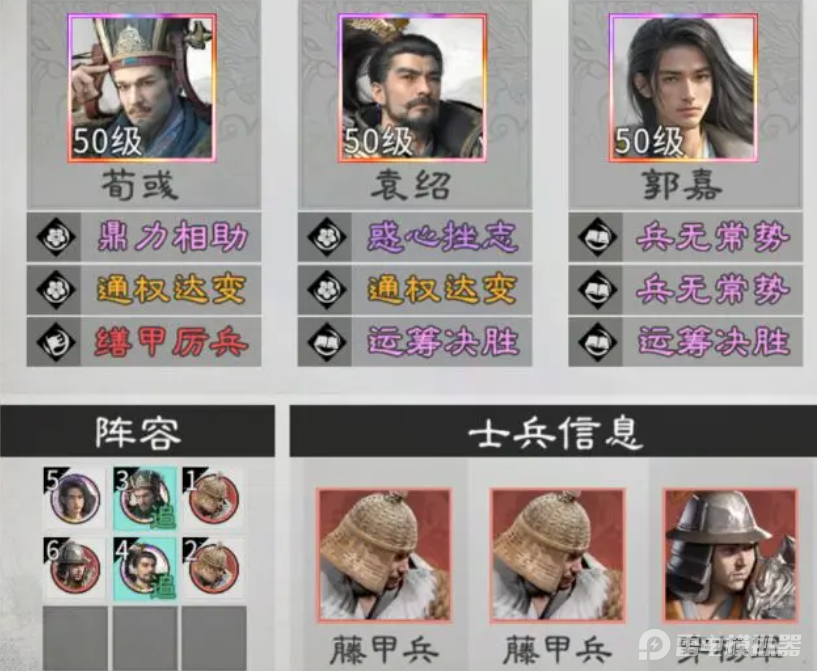 以袁绍为核心构建成长型队伍,优势在于群体伤害覆盖与全队持续增益的叠加。天赋叠加使队伍在持久战中优势明显,技能联动紧密,郭嘉与荀彧的天赋直接服务于袁绍的输出与生存。