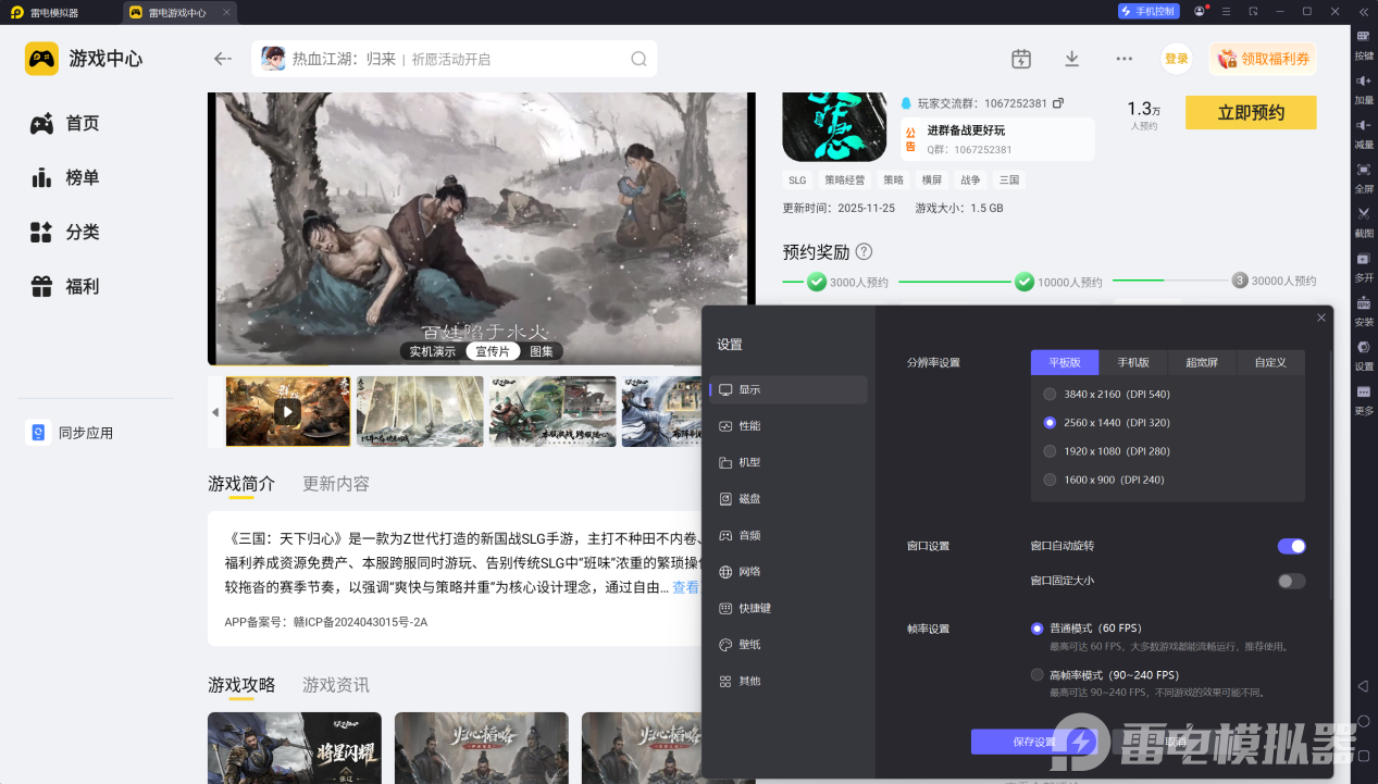 大屏高清体验,细节尽收眼底:雷电模拟器支持将游戏画面投射到电脑大屏幕上,能更清晰地展现游戏中的场景建模、技能特效以及战场局势。玩家可以轻松观察到战场上每个单位的动态、城池建筑的细节以及地图上的资源分布,更精准地进行战略部署和操作,提升整体游戏沉浸感。