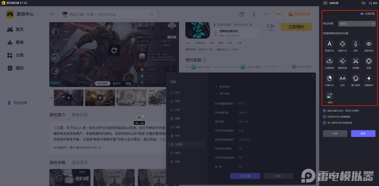键鼠操作精准流畅,微操得心应手:游戏中涉及大量的点选、拖拽、编队等操作,使用雷电模拟器可通过键盘和鼠标进行控制。鼠标精准点击能快速选中目标、释放技能或下达指令,键盘快捷键可设置常用功能,如部队移动、技能切换、视角调整等,大幅提升操作速度和准确性。