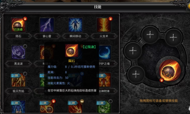 在技能选择上,前期可选用黑龙波,其攻击距离和杀伤力在初期表现出色;