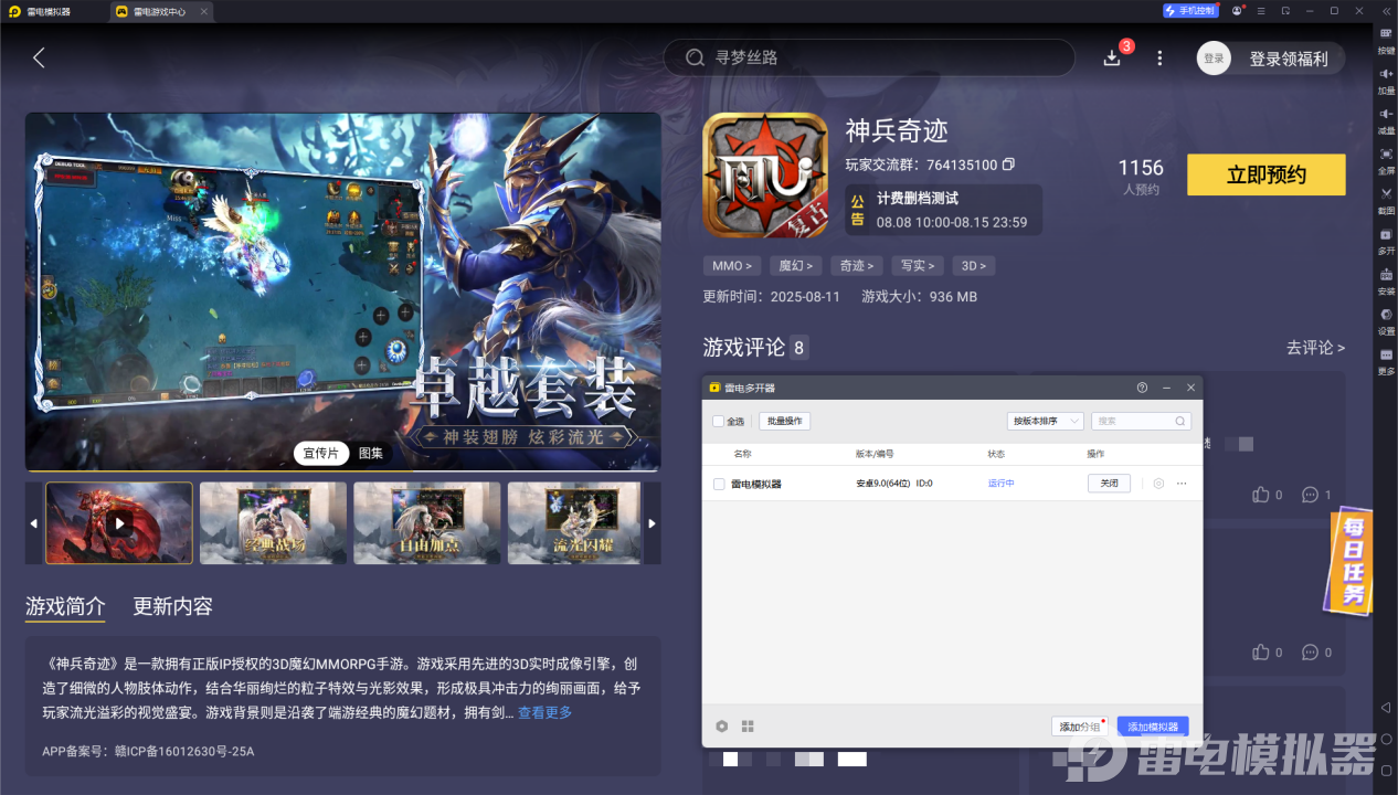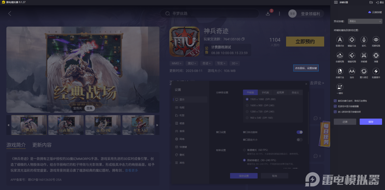 用雷电模拟器运行游戏能享受更稳定的帧率和更清晰的画面,特别适合神兵奇迹这种需要长时间挂机游戏。